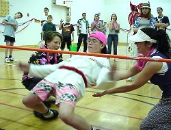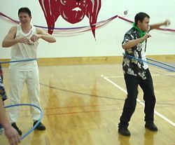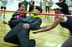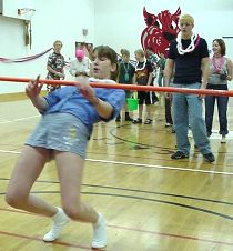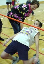 This peculiar contest involves seeing who can walk forwards under the lowest possible height. Not everyone was good at this game. Body size and shape have a lot to do with it. This is really a round-about method for determining who has the greatest flexibility ... definitely an asset if you're an athlete! Of course, being short helps too!
