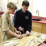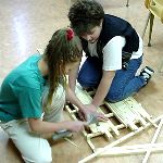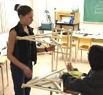 The grade 7 and 8 classes are building bridges to learn about how structures can be strong and support many times their weight. |