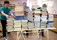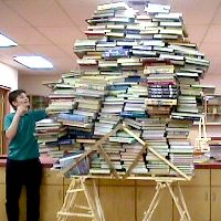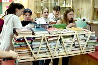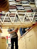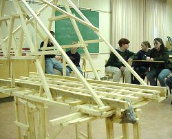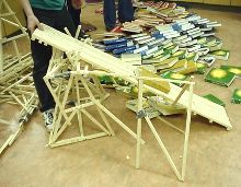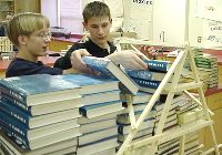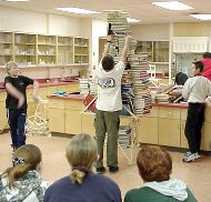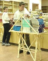 Another strongly built bridge. This one broke, but only under a very full load. Relative strengths of the bridges was measured by counting the number of books needed to collapse the structure. |