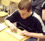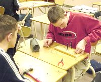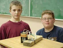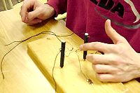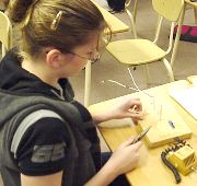 | Mr. Willis' Grade 9 Science class has been learning about electricity. These motors are made from wire, nails, and paperclips. You can find out how they work, and see a working model, by visiting the 'Motor' page in the science section of our website. |