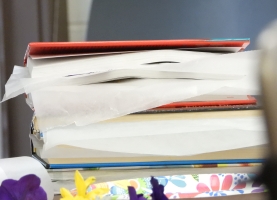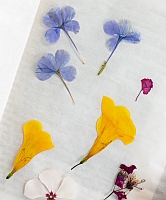 ![]() Fold the book closed; the flowers should now be surrounded by waxed paper on both sides. Press heavily on the closed book to flatten out the flowers. You can repeat this process several times within the same book, and/or different books.