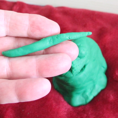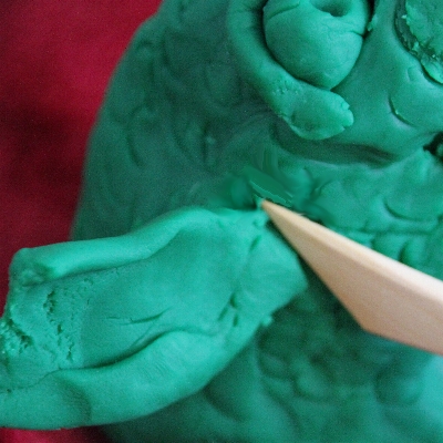I used Play-Doh to make the model here. While it shapes very easily, it is too soft for proper sculpting; handling it causes details to get smushed. You have to be very careful. Also it gets very brittle when it dries. Between sessions you can keep it soft by storing it in a plastic lunch bag. Small sculpting tools are useful, but you can substitute anything.