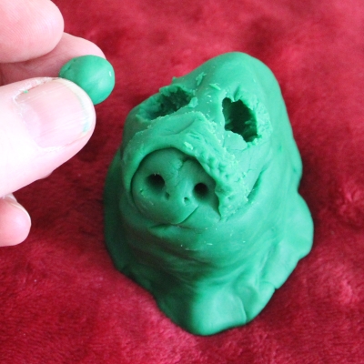 13/14. Use a scooping tool to excavate two large holes for the eyeballs