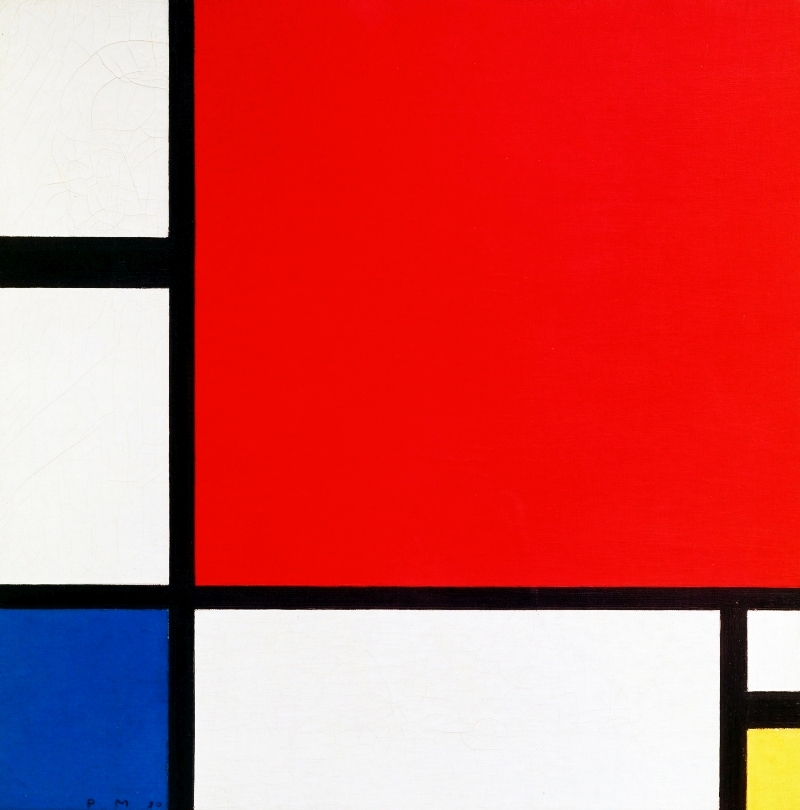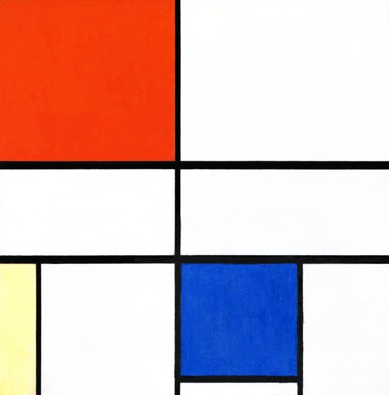 Piet Mondrian was born in 1872 in the Netherlands. He began painting in 1895. Most of his early works were landscapes. Eventually his work became more abstract. In his later compositions, he avoided any suggestion of reproducing the real world. Instead, using horizontal and vertical black lines that outline blocks of pure white, red, blue or yellow, he expressed his conception of 'ultimate harmony and equilibrium'. These paintings are the ones for which Mondrian is best known.