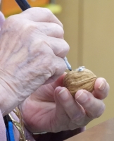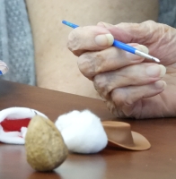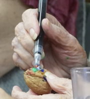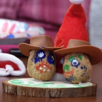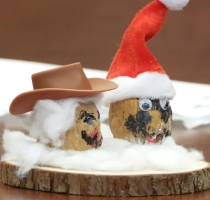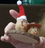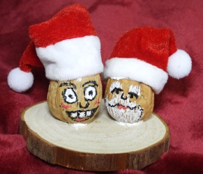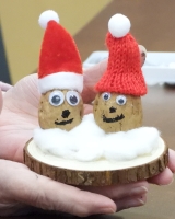 This activity is an easy one and lots of fun. We've designed it with a Christmas theme, but it could be used any time.We created little figures using walnuts. All of the materals used were inexpensive, and obtained from Amazon, including the walnuts! We used small Santa hats, and acrylic markers. You'll also need quick-drying glue; a hot glue gun would be ideal. We attached the figures to small circular wooden disks.