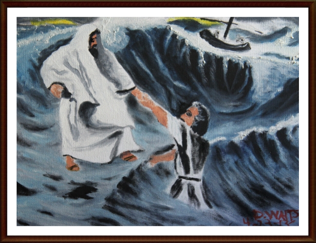 ![]() "Lord Save Me ..."Matthew 14:28-33 I love this passage where Jesus is walking on the water. Peter said to Jesus "Lord, if it is you, command me to come to you on the water". So Jesus said "Come" and when Peter had come down out of the boat, he walked on the water to get to Jesus. But when he saw that the wind was rising, he grew afraid, and began to sink, crying out "Lord, save me!" And immediately Jesus stretched out His hand and caught him. |