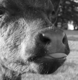 Sometimes you have to break that rule. LIke when you're taking photos of cows on 4H Day. Here I wanted the immediate business end of the cow, the tongue that was trying to lick me, to be in focus. I focused on the tongue and used a large aperture. Then I backed up quick!