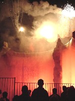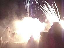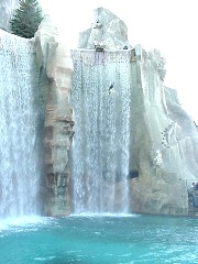 ![]() At the centre of the park is Wonderland Mountain, around which all of the attractions are situated. It has a waterfall, and at least two roller coasters pass through the inside of the mountain. In addition, divers plunge off the top of the waterfall, and for at least one season, just before the park closed, the mountain turnd into a volcano and erupted. All this suggests some interesting ideas from geology which we will examine a little more closely. Erosion This isn't a real mountain, of course, and the falls aren't a river. The water must be pumped back up from the pool below to keep the falls in operation. A real waterfall would continually be eroding the rock beneath the falls. As the water streams over the edge at the top, it would be eroding the lip of the falls bit by bit, especially if the rock is soft, like limestone. This is the case with a real waterfalls like Niagara Falls, which is slowly eating away the rock beneath it, and causing Niagara Falls gradually, over the course of thousands of years, to work its way up the Niagara River. Wonderland Falls don't erode. Here's why. First of all, the entire mountain is made from concrete. This doesn't erode easily, and even if there is damage (perhaps from remaining moisture freezing in winter when the falls are shut down, and cracking the concrete), it is easily patched. Because the falls are shut down in winter, repairs are possible. At the lip, where there is a lot of friction, we noticed that the water doesn't actually run over concrete ... the top of the falls is covered in a thick layer of plexiglass. No erosion ... and it gives the falls a pleasing arc away from the rock face as well. Volcanoes It was very realistic ... so much so that one of the special effects had to be removed after the first year of operation, because of the fear of panic in the tightly packed crowds. Gas jets on nearby buildings, following the 'eruption', made it look like sparks from the volcano had ignited those buildings. Apparently some spectators thought that a real fire had started! In any case, they don't do the volcano any more. It was probably too much of a disturbance to the neighbouring subdivision. Before the park was built, the region was pretty sparsely populated. In fact, there was a small airport nearby where I almost learned to fly a plane. (Don't ask!) Now the region all around the park is packed with homes. You can learn more about real volcanoes here. In a real volcano, a fissure exists through the crust, down into a lower layer of the earth where heat makes the rock molten. When pressure builds sufficiently, this molten rock, called magma, can make its way to the surface through the fissure, and it exits the volcano as lava. This molten rock at thousands of degrees burns everything in its path, and will flow until it cools. Eventually it will break down into particles, rich in minerals, which become the basis for a new, very rich, soil layer. The 'volcano' at Wonderland imitated this process very well, with the use of lighting, sound, fireworks, and gas jets. Lighting on the flowing water simulated flowing lava, and background sound effects and music made the event overwhelmingly real. Here are a few more pictures to give you an idea of what happened. |