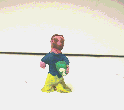 Creating the Frames: After deciding what the animation would look like, our first step was to take ten photographs of the piece of clay. After each picture was taken, we flattened the clay slightly. We planned our animation as a clay blob that flattens itself and then returns to its original shape. (O.K., not terribly exciting, but it was quick to do!) ![]() ![]() ![]() ![]() ![]() ![]() ![]() ![]() ![]() ![]() For purposes of this illustration, and to keep the file sizes small, we resized the images, making them quite tiny. With faster computers and large storage these days, that is no longer necessary; full screen animations are now possible. We also did not use special lighting, or a tripod. You will see that this made the final animation a little 'choppy', but we still managed to obtain a decent result. GIF Animations: A computer gif animation needs a program that will preview the animation, and one to combine your photos into a single file and set the timing. As previously mentioned, we used Irfanview for previewing an animation and GIF Construction Set Professional for creting it. Gif images use just 256 colours or less, so these types of animations may produce unusual colour changes in photos of people, but are ideally suited to drawn animations. Clay animations work fine, if you ignore the backdrop and shadow colour changes. ![]() The advantages of using gif animation? The process is simple, and the final file sizes are small. It is also easy to set the timing between frames, and to fix problems in the timing. Jr. High students master the program after just several uses. ![]() Here is a small animation made by students, There are some disadvantages. Only being able to display 256 colours may be a problem, depending on what is being animated. Also, there is no way to add sound or music to a gif file. ![]() This student animation, called 'Thirst', is a full scene that required about a hundred photos. It was quite tiny; I enlarged it here to make it easier to see, which tends to distort it a little. But you can imagine all the work that went into producing this! MPEG Movies: Mpeg (or mpg) movies allow you to add sound or music to your animation, and to retain all the colours in the original frames. The disadvantages of this format are that the program needed to create and edit videos will be more expensive, and more difficult to learn. We originally used MGI VideoWave III with Jr. High students, who needed about three to four 35-minute classes to complete and edit a video. Later, much more sophisticated video editing software became available, including the simple but quite effective Windows Movie Maker. The last time we made videos in class, I turned all of the video editing tasks over to a grade 7 student who was very good at it. Movies can be quite large in file size. While the tiny movie of this animation shown below is just over half a megabyte, in class we made videos that were hundreds of MB in size. Full screen videos now are often many gigabytes. Available below is the same animation, where we used the same 10 frames (slightly larger this time) and a sound effect, to make an mpeg movie. We didn't make any special effort to coordinate the sound with the pictures, and it still turned out O.K. The addition of sound, and the lack of colour distortion, make a much nicer animation. Also, students can use the skills they've learned to produce and edit live-action videos. A Science Fair Project: Two grade 5 students decided to try clay animation to make a video, and to display their results at our Science Fair. They chose the mpeg movie method so that they could add a music sound track to their creation. ![]() ![]() Their storyboard involved an imaginative tale of knights and dragons, many scenes, and a lot of little characters made from plasticene. They discovered while filming the first scene that keeping their characters intact between photographs, and avoiding damage while changing their characters' posture and position, was quite challenging. Nevertheless, they were able to finish one complete scene, and produce a test movie, which turned out quite well. They then created title and credit screens, and added suitably eerie music. |