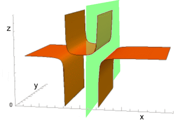 The asymptotes don't even have to be horizontal or vertical. Have a look at our page about the hyperbola. In three dimensions, the asymptotes would be planes; here's an example of a 3-dimensional graph with one asymptote plane (in green): ![]() This topic is beyond the scope of high school mathematics, although the base 2D function y = cscθ is in Math 30. |