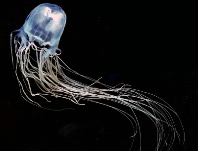 The Box jellyfish is the most toxic animal on earth, with venom containing toxins that attack the heart, nervous system, and skin. It can be found in the coastal waters off northern Australia. They are distinguished by their box-like body. Some species of box jellyfish produce potent venom delivered by contact with their tentacles. Stings from some species are extremely painful and often fatal to humans. Box jellyfish can move more rapidly than other jellyfish; speeds of up to 2 metres per second have been recorded. Depending on the species, a fully grown box jellyfish can have a body length of up to 20 cm, and the tentacles can grow up to 3 m long. Its weight can reach 2 kg. There are about 15 tentacles on each corner of its box-like body. Each tentacle has about 500,000 cnidocytes, containing nematocysts, harpoon-shaped microscopic mechanisms that inject venom into its victim. The thumbnail-sized Irukandji box jellyfish is also lethal despite its small size. The box jellyfish actively hunts its prey, small fish, rather than drifting as do true jellyfish. While some species of box jellyfish have been called "the world's most venomous creature" only a few species have been confirmed to be involved in human deaths; some species are not harmful to humans, delivering a sting that is just painful. In Australia, fatalities are most often caused by the largest species of this jellyfish, Chironex fleckeri, which is certainly one of the world's most venomous creatures. After severe Chironex fleckeri stings, cardiac arrest can occur quickly, within just two minutes. In Australia, Chironex fleckeri has caused at least 79 deaths since the first report in 1883, but most encounters appear to result only in mild symptoms. The most recent deaths in Australia have been in children. |