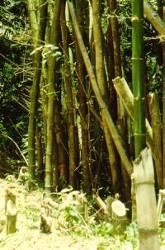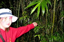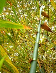 ![]() We decided to find out more about this plant ... everyone seems to be familiar with it, but it isn't much studied in school. We certainly didn't know that much about it before we did some research. Have a look at what we found. As a member of the grass family, bamboo can be recognized by the special structure of its stem, or 'culm', and also by its rapid rate of growth, and its flowering. Bamboo does not flower every year, but once every 7 to 120 years, depending on the species, and usually dies after flowering. Once matured, a bamboo stem remains the same size for the rest of its life. It doesn't grow higher or wider. It doesn't add a growth ring every year as trees do. Bamboo is flexible, bending in strong winds, but rarely breaking. The flexibility is due to its hollow culm, and the nodes, or joints, between segments. The culm, branches and leaves stay green throughout its life, even during winter. Some plants send runners out to establish new plants, while others, called 'clumpers', expand from the original plant. Usually tropical bamboos are clumpers, while temperate bamboos are runners. Bamboo is the fastest growing plant. Some varieties can grow as fast as Bamboo is both decorative and useful. In many parts of the world it is food for people, fodder for animals, an important construction material, and is also used for making a great variety of useful objects. The vascular bundles are what makes bamboo strong. They are similar to the steel rods in reinforced concrete, and make bamboo, when it has been laminated, as strong as soft steel. The vascular bundles also make it easy to split bamboo stems vertically, increasing the number of uses. The roots, called 'rhizomes', are where new plants are formed. New bamboo shoots are produced every year from these rhizomes. Madake is a type of bamboo that apparently flowers only once every 120 years. All types of bamboo flower only seldom, and remarkably, all the bamboo of a given species flowers at exactly the same time. Even if the bamboo is transplanted to different places, it will flower at the same time. Bamboo leaves are sometimes used as fodder for animals; young bamboo leaves and twigs are a favorite meal for elephants and Pandas. |