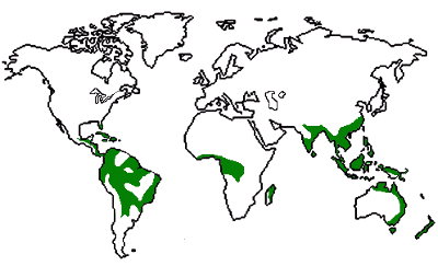 Rainforests contain the largest variety of living things. With an average temperature of 25-30°C and an annual precipitation in excess of 200 cm per year, they are hot and wet, and plants can grow year-round. The rainforest is predominantly large-leaved trees, although both deciduous and evergreen trees can exist, depending on the location. The forest floor is thick with varieties of small plants, including ferns, mosses and vines. Animal life is abundant, including many varieties of birds, insects and reptiles.Different layers of vegetation exist; tall trees take advantage of the sunshine, while plants needing less light grow to shorter heights, and those able to exist with little light dominate the forest floor. ![]() ![]() Animals in a rainforest occupy niches that suit them; some live in the treetops, while others survive on the forest floor. Rainforests are home to the largest number of species in the world, including some seen nowhere else, such as parakeets, peccaries, many species of monkeys and apes, and a huge variety of reptiles and insects. Not all of the world's rainforests have been documented, so new species are still regularly being discovered. |