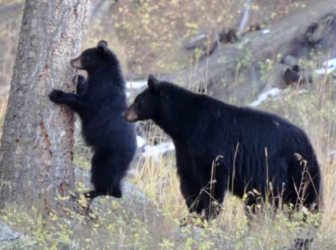 American black bears rarely attack when confronted by humans and usually only make mock charges, emit blowing noises and swat the ground with their forepaws. The number of attacks on humans is higher than those by grizzlies in North America, but this is largely because there are many more black bears. The majority of attacks have happened in national or provincial parks, usually near campgrounds, where the bears had habituated to close human proximity and food. Moreover, compared to grizzly attacks, aggressive encounters with black bears rarely lead to serious injury. Most attacks tend to be motivated by hunger rather than territoriality, so victims have a higher probability of surviving by fighting back rather than submitting. Also, female black bears are not as protective of their cubs, and rarely attack humans in the vicinity of the cubs. |