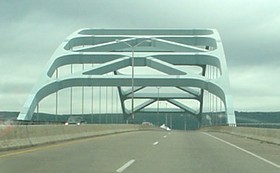 Maintenance workers regularly climb the cable supports to reach the top of the towers. See the photo of the very similar Mackinac Bridge below for a closer look at these support cables.