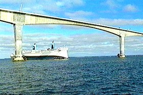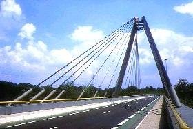 The picture on the right just above is the Confederation Bridge, whose 12.9 kilometre span joins Borden-Carleton, Prince Edward Island and Cape Jourimain, New-Brunswick. It is the longest bridge over ice-covered waters in the world. This historic bridge, which opened on May 31, 1997, helps connect P.E.I. to the rest of Atlantic Canada. The bridge carries two lanes of traffic 24 hours a day, seven days a week, and takes approximately 10 minutes to cross at normal travelling speeds. One of the engineers working for the Calgary company which installed the complex traffic signal system on the bridge is Worsley Central School graduate Bruno Peters!
