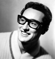 Buddy Holly was born Charles Holley on Sept. 7, 1936 in Lubbock, Texas. He was was raised by a family of musicians, and learned to play guitar and sing alongside his brothers and sisters. Holly's musical style was influenced by gospel, country, and rhythm and blues music; he performed in Lubbock with his friends from high school.In 1955 he bought a Fender Stratocaster electric guitar and developed a style of playing featuring major chords that became his trademark. A year later, Holly would release his first album with his band The Crickets. As a singer and songwriter, in the two short years before his death in early 1959 he would become a pioneering figure of mid-1950s popular music. Buddy Holly released only three original albums. However, the music on those three records were milestones in the development of rock and roll. Countless musicians, from Bruce Springsteen to The Rolling Stones, have covered Buddy Holly's songs on recorded and in live performances. His music has lived on for over 60 years. In 1955, after opening for Elvis Presley, Holly decided to pursue a full-time career in music. He opened for Elvis, who was about to sign his own first record contract, three times that year, and Holly's band's style shifted from country and western to entirely rock and roll. In October that year, when Holly opened for Bill Haley & His Comets, he was spotted by a scout who helped him get a record contract.