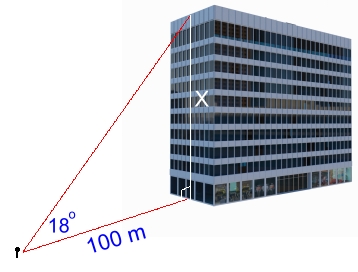 Standing on the street 100 metres from the base of the building, we measure the angle to the top of the building to be 18°. Using trigonometry:x / 100 = tan18 x = 100·tan18 x ≈ 32.5 m (rounded to 1 dp) Our first method gives an answer of about 32.5 m for the height of the building. Method 2: Drop a Rope From the Roof