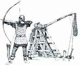 Siege engines also threw projectiles, with the aim of knocking down the walls of the castle.
