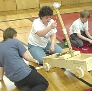The trebuchet could use heavier rocks, up to 150 kg, and fling them farther, up to 450 metres, with more accuracy. You can see an animation of a trebuchet in action.