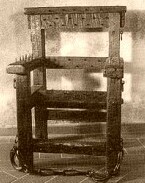 The chair was made from iron, and sometimes had short spikes on the arms and seat. The prisoner was chained to the chair, and a fire was built underneath. Recent evidence suggests that this method of torture may still be practiced in some countries today.
