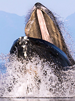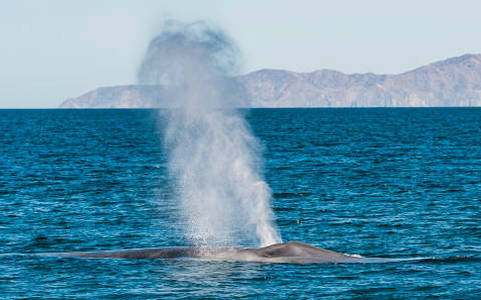 Cetacean bodies are generally similar to those of fish. The body is wrapped in a thick layer of fat, known as blubber. This provides thermal insulation and gives cetaceans their smooth, streamlined body shape. In larger species, it can reach a thickness up to one-half metre. Most Cetaceans breathe while moving through the water, and spend only a short time at the surface, where they exhale in an explosive ventilation called a blow. The blow is expelled forcibly, and can be compared to a cough. Cetaceans use up to 80 percent of their lung volume in a single breath, in contrast to humans, who use only 20 percent. The blow is visible because of water condensation; blows of blue whales are frequently more than 6 metres high. ![]()