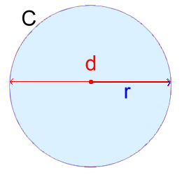 The circumference of a circle C is the distance all the way around the outside.In order to calculate that distance, we'll need to know the circle's radius r, or the circle's diameter d. The diameter is twice as long as the radius: d = 2·r We'll also need to use π. You can learn more about π here. Because the value of π appears whenever you divide the circumference of a circle by its diameter, we can write this fact using symbols: π = C/d Rearranging this we get C = π·d (We use a dot for a 'times' sign in formulas, rather than an 'x', to avoid confusion). This is a formula we can use to calculate the circumference of a circle. Let's try an example.