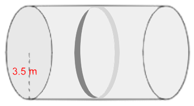 A cylindrical industrial tank with radius 3.5 m needs a strengthening band attached around the middle. How long is the band?Its length is the circumference of the cylinder. C = 2·π·r C = 2·π(3.5) C ≈ 22.0 m