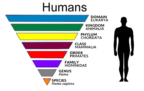 Finally, here is the taxonomy for human beings. Notice that: