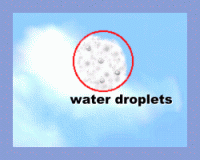 What are clouds made from? The answer is very simple ... they are just a big collection of water droplets. A cloud is really just fog, but it's up in the sky! The heat from the sun causes water in lakes and rivers to evaporate. When it does this, it turns into an invisible gas called water vapour. This invisible water vapour rises into the sky, because it's lighter than air.When the water vapour is high in the sky, where it is cold, it condenses back into water. This is the same thing that happens when water droplets appear on the outside of a cold glass of pop on a hot day. ![]() The water vapour in the sky turns back into water droplets. There are often a lot of water droplets, but they are very tiny, so they can float. (They are just like the mist you see when you spray air freshener in your bathroom). As more and more of these water droplets collect in the sky, they clump together and get bigger and bigger. Eventually the millions of water droplets become visible as a cloud in the sky. ![]() As more and more water droplets clump together and get bigger and bigger, the cloud looks darker and darker. Eventually, the water droplets get so heavy that they can't float any more, and they fall to the ground ... as rain. The rain ends up in the lakes and rivers, ... and then it starts all over again. This is called the water cycle. |