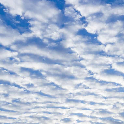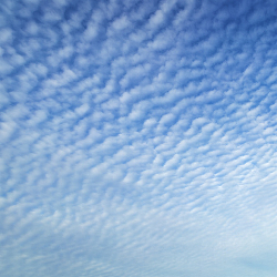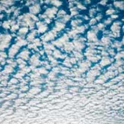Puffy or patchy clouds that often appear in rows or waves across the sky.