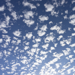 Puffy white clouds like cotton balls, indicating fair weather. Can grow into storm clouds.