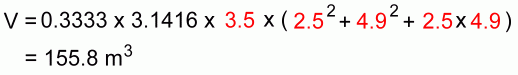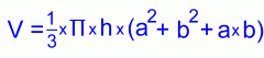 Here's the formula you will need, to calculate the volume of a pile of grain in the shape of a frustum: