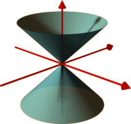 A true cone has two 'naps', each of which extends to infinity upwards and downwards. The two naps meet at a point in the centre.