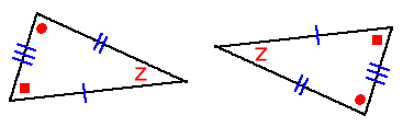But it isn't necessary to know that all six pairs of things are equal in order to conclude that the triangles really are identical. There are shortcuts! Move on to page two >>> |