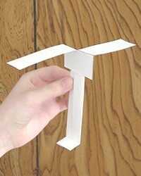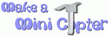 ![]() Here's a simple design for a mini copter that really works! After you build it, you can experiment with changing the design; change to heavier paper, add weight, or fold it differently, to see if you can make improvements. Follow the link to this page, where you can see a full size design that is ready to be printed out on regular paper and constructed. The page includes instructions. Drop it from high near the ceiling. It will work perfectly the first time. We've seen a cardboard version of this successfully used in an egg-drop contest to safely drop an egg from school roof height to the ground! |