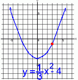 Consider the function y = 1/3 x2 - 4 which is graphed on the right. This function is a curve, commonly called a parabola. Does it make sense to talk about the slope of a curve like this, when clearly it gets steeper and steeper the further you get from the center? The slope is changing, point by point, and getting bigger!
