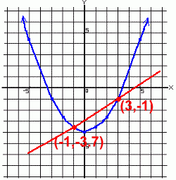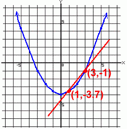 Join this point to the point (3, -1) to make a line. This line cuts through the curve in two places, and is called a secant.