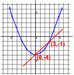 This line is getting a little closer to the line we want; we can find its slope like we did for the previous secant; using the points (0, -4) and (3, -1), the slope works out to be 1.
