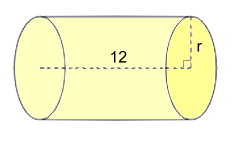 V = π·r2·H1800 = π·r2·12 1800 = (37.70)r2 1800/37.70 = r2 48.65 = r2 ... now do a square root: 7.0 = r rounded to 1 d.p. Surface Area of a Cylinder
