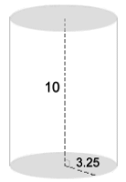 The dimensions are its width and length: Width = height = 10 cm Length = 2·πr = 2·π(3.25) = 20.4 cm |
