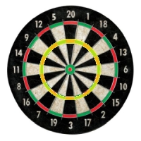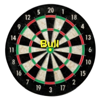 We're going to calculate the probability of getting a high score by throwing one dart. The probabilities we're going to look at are for hitting the bull (50 points), the outer bull ring (25 points) and the triple 20 (60 points).We're assuming that you have no skill and are throwing randomly at the board, but will hit within the scoring area. We're also going to ignore the thickness of the wire. The radius of the scoring area on a regulation dart board is 17 cm. This makes its area π(17)2 = 907.92 cm2. Probability of Hitting the Bull