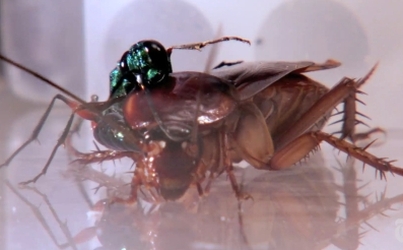 The dementor wasp Ampulex dementor (named for the soul-sucking creatures in Harry Potter) was recently discovered in Cambodia and Vietnam. This wasp injects venom into a cockroach's body. The wasp's stinger is so well tuned to its victim that it can sense where it is inside the cockroach's dome to inject venom directly into subsections of its brain. This doesn't kill the cockroach, but prevents it from making spontaneous movements, rendering it zombie-like. The dementor wasp then leads it, like a dog on a leash, to its burrow, where it leaves it, after injecting it with its eggs. The cockroach is still alive, and is slowly eaten by the larvae as they hatch and mature over the course of about eight days. ![]() |