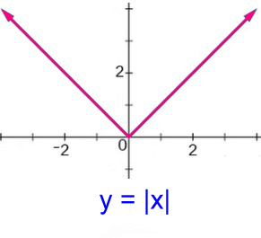 On the left is the simplest absolute value graph. Any x value can be chosen, since the graph continues forever left and right. This means the domain is x ε R. The graph is made from an infinite number of Real numbers as well, so the range is y ε R. However, the graph's y values are restricted to those from 0 and up. This makes the range y ≥ 0, y ε R Often we'll assume the use of Real numbers, and will state the range as simply y ≥ 0. We won't do that here.