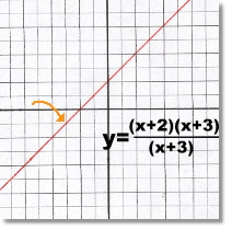 This is a discontinuous function. It looks like a line, but you can see from its equation that x= -3 is an undefined value, as it would mean dividing by zero if it is used.The graph actually has a hole at -3. The corresponding y value of -1 isn't on the line either. Domain: x ε R, x ≠ -3 Range: y ε R, y ≠ -1