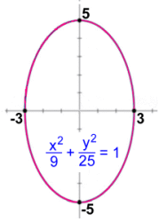 Here's an ellipse, which works almost the same way as a circle, except that the dimensions are different in each direction. No x values are bigger in size than 3 No y values are bigger in size than 5 Domain: x ε R, -3 ≤ x ≤ 3 Range: y ε R, -5 ≤ y ≤ 5