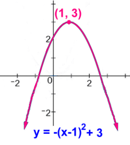 Here's an example of another quadratic function whose equation is The graph runs forever left and right, so the domain is x ε R. The range is all real numbers, but the graph is made up from only the y value 3 and downwards. This makes the range y ≤ 3. Written in full: Domain: x ε R Range: y ε R, y ≤ 3.