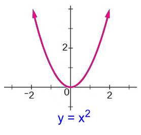 This is the simplest quadratic function, with its vertex (0, 0) being the lowest point. All points on the graph have x and y values which are equal to or bigger than zero. Domain: x ε R, x ≥ 0 Range: y ε R, y ≥ 0