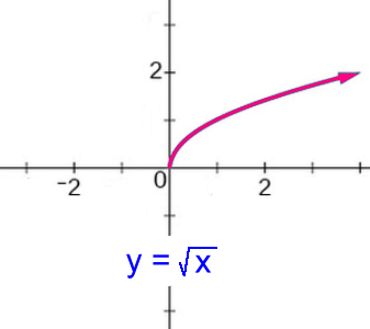 The starting point is (0, 0). In this function, there are no negative x's or y's. Both x and y must be bigger than or equal to zero. Domain: x ε R, x ≥ 0 Range: y ε R, y ≥ 0 Can you picture what the domain and range would be if the starting point were (2, 4)? Find out by holding the cursor over the grey box