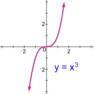 This is the cubic function y = x3.It is similar to a line, in that it extends to negative and positive infinity in both direstions. Domain: x ε R Range: y ε R This will be the domain and range for all odd powered polynomial functions.